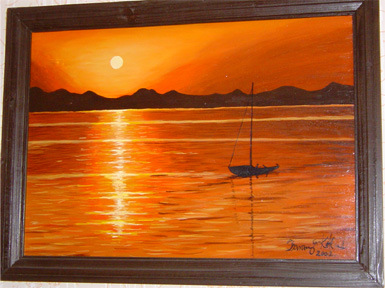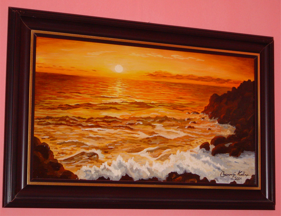 80x50 cm Farostlemezre temperával Cím: Naplemente (Sunset) 40000 F |