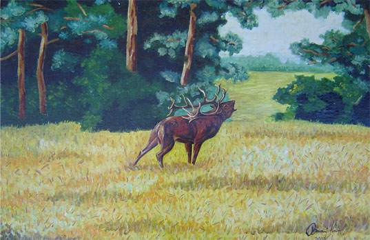 80x45 cm Farostlemezre temperával Cím: Szarvasbőgés (Bell) 40000 Ft |