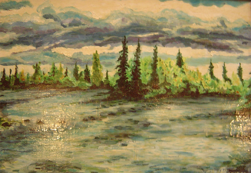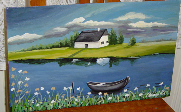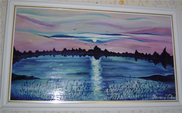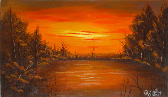 T60x30 cm Farostlemezre temperával Cím: Tó naplementénél (Lake with sunset) 30000 Ft |