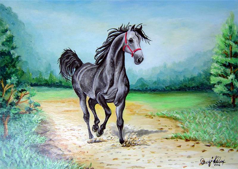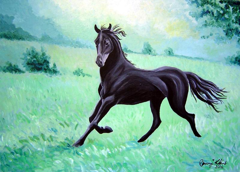 80x50cm Farostlemezre temperával Cím: Fekete ló (Black horse) 40000 Ft |