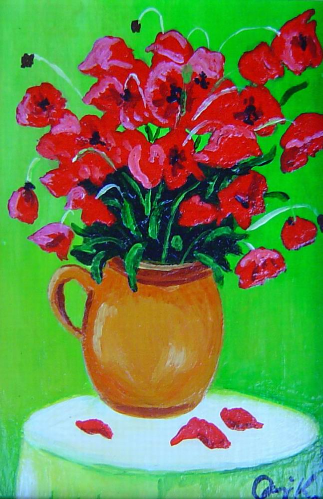 30x40 cm Farostlemezre temperával Cím: Pipacsok köcsögben (Poppys int he jug) 30000 Ft |